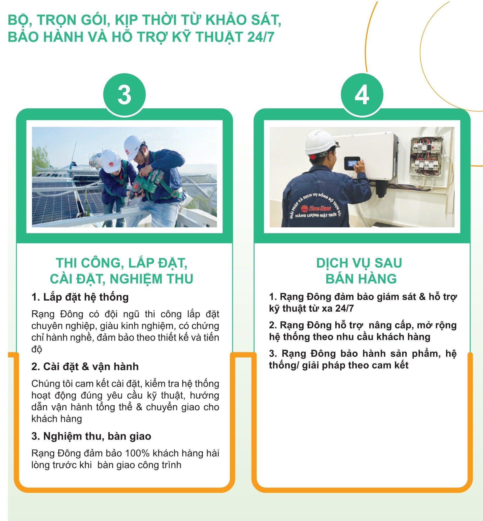 3. Thi công & Lắp đặt điện NLMT: Đội ngũ kỹ sư chuyên nghiệp, đảm bảo đúng tiến độ và kỹ thuật.